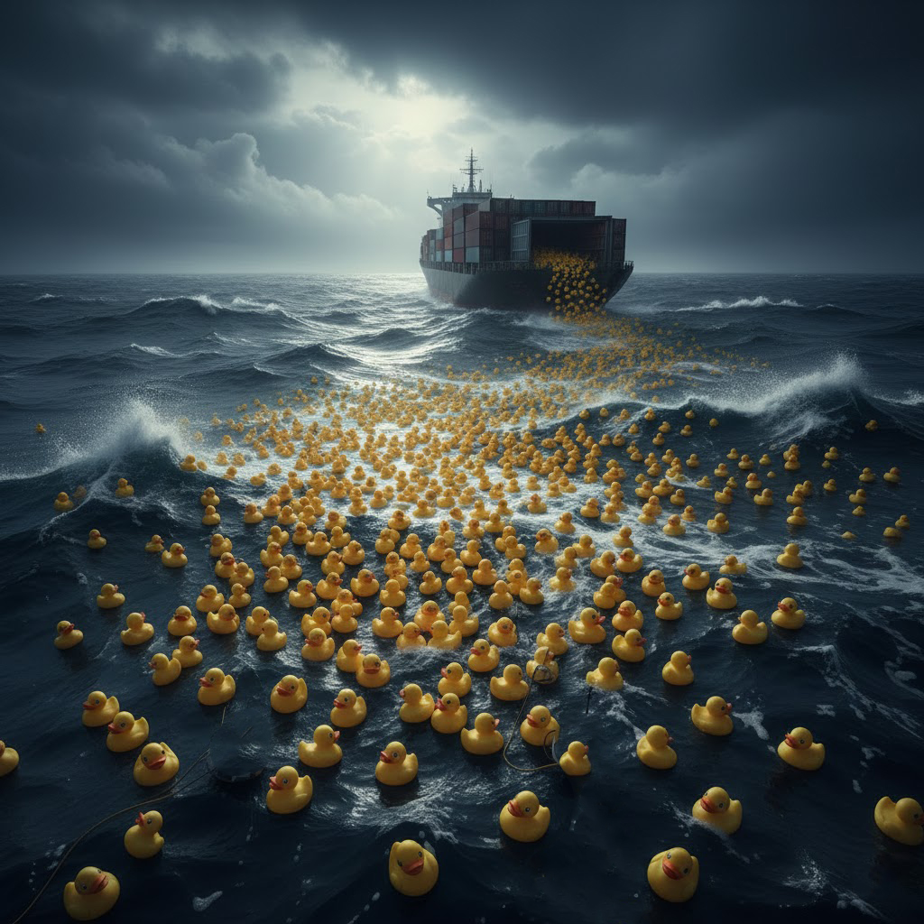 História kačičiek má aj svoju serióznu, vedeckú stránku. V roku 1992 sa počas búrky z nákladnej lode v Tichom oceáne vysypalo takmer 30 000 hračiek do kúpeľa. Tieto "odvážne" kačičky putovali tisíce kilometrov, prekročili Arktídu a dorazili až k brehom Škótska. Oceánografi ich pohyb sledovali roky, čo im poskytlo neoceniteľné dáta o morských prúdoch.