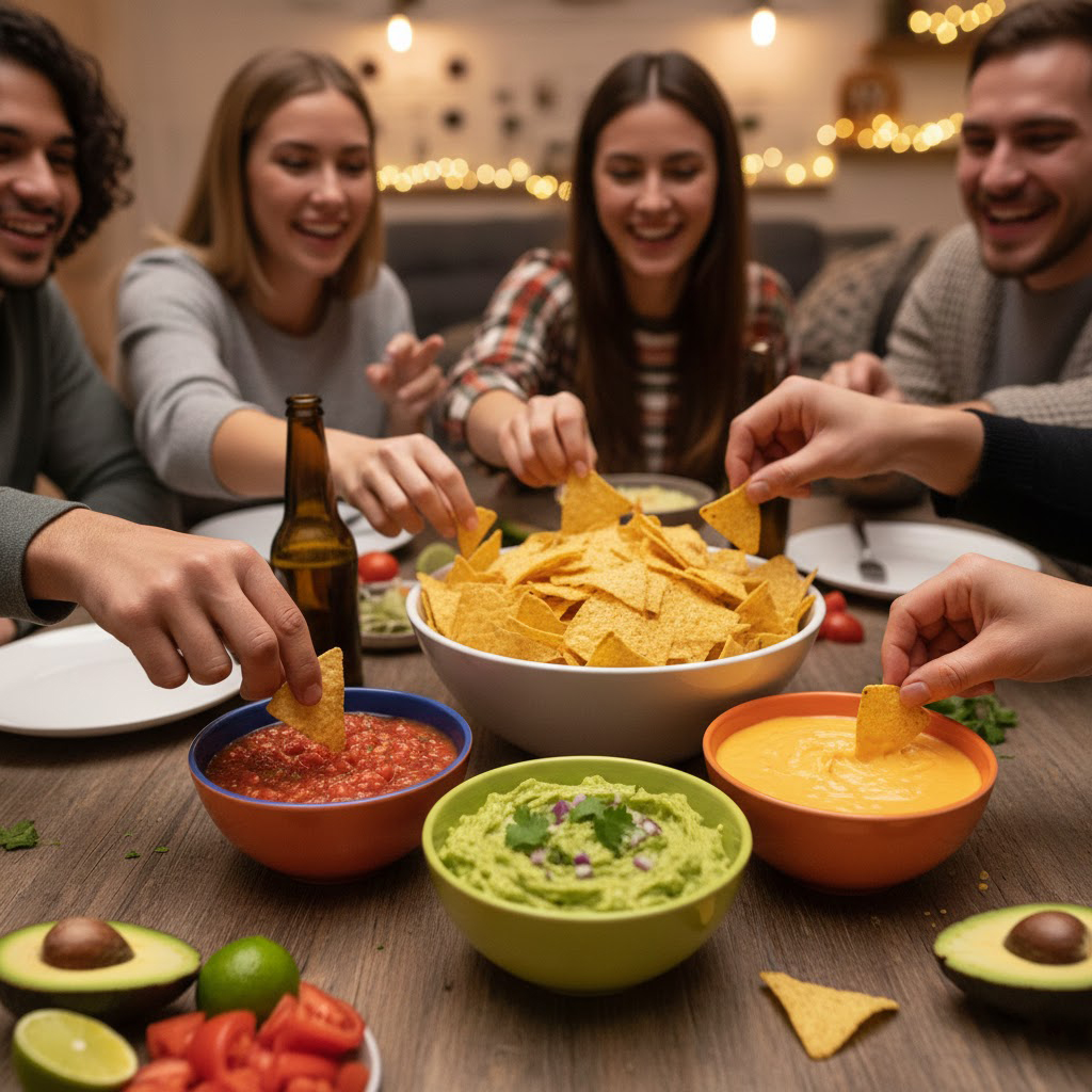 - Usporiadajte "Dip párty": Pripravte si niekoľko druhov omáčok – klasickú paradajkovú salsu, krémové guacamole a teplú syrovú omáčku. Pozvite priateľov a otestujte, ktorá kombinácia s čipsami chutí najlepšie.