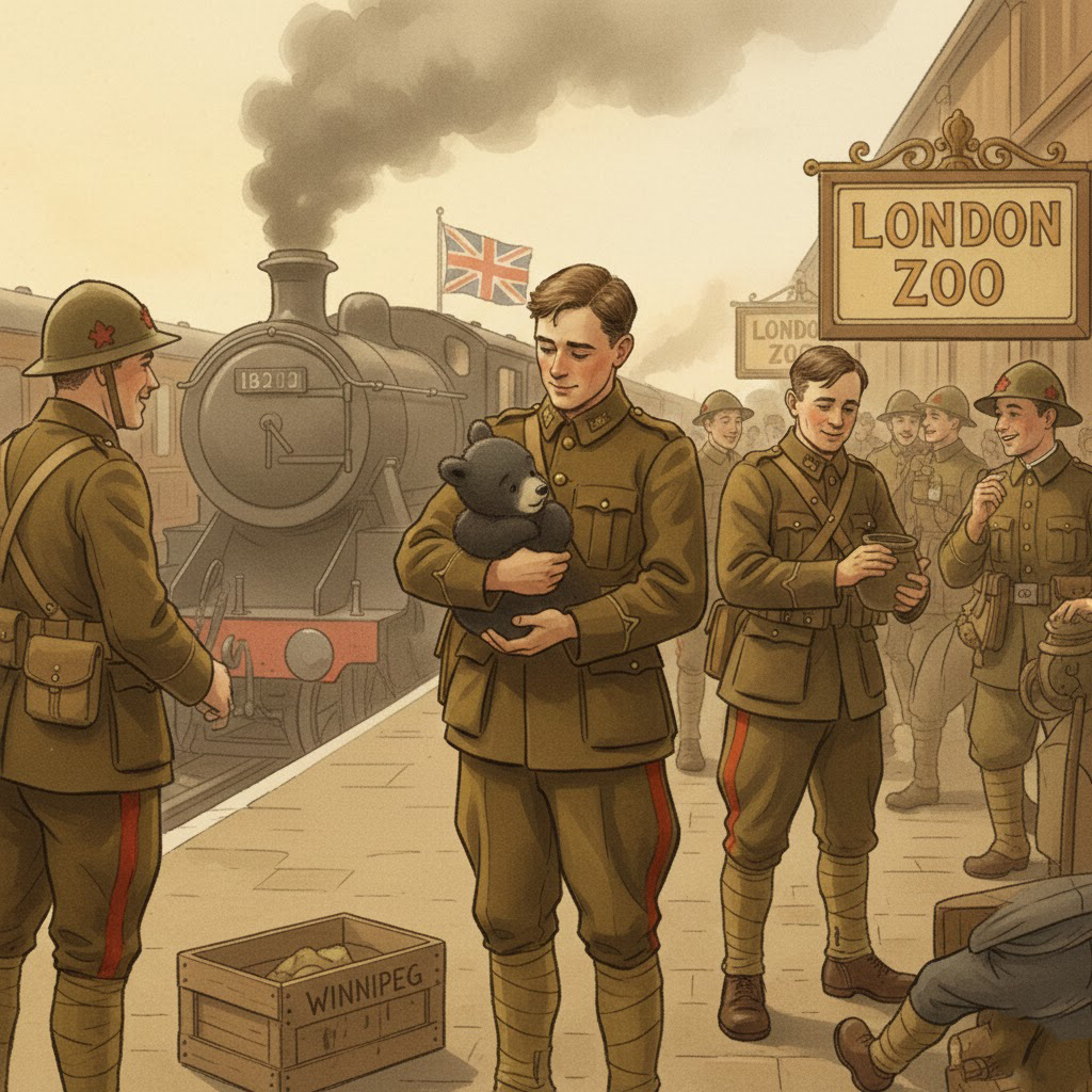 Práve v tejto zoo sa s medvedicou Winnie zoznámil malý Christopher Robin, syn spisovateľa A. A. Milnea. Chlapec si ju tak obľúbil, že podľa nej premenoval svojho vlastného plyšového macka, ktorého pôvodne volal Edward. Meno "Pú" (Pooh) zasa pochádzalo od labute, ktorú rodina stretla na dovolenke. Otec, inšpirovaný synovou fantáziou a hrami s plyšovými hračkami v detskej izbe, začal písať príbehy o mackovi a jeho priateľoch, ktorí mali taktiež predlohu v Christopherových hračkách (Prasiatko, Oslík, Tiger a Klokanica).