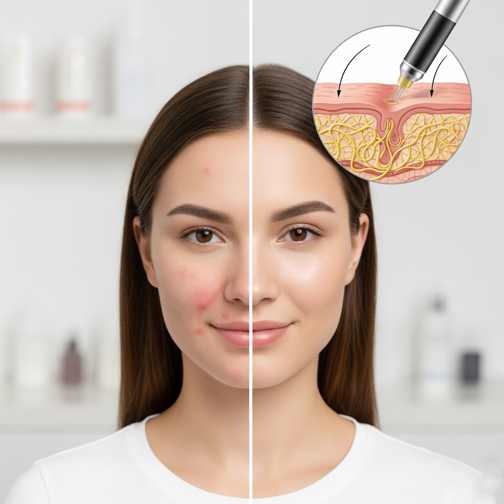 Liečba jaziev: Je jednou z najúčinnejších nechirurgických metód na výrazné zjemnenie jaziev po akné a iných atrofických (prepadnutých) jaziev.
