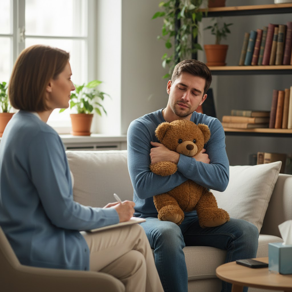 Plyšový medvedík slúži ako prechodný objekt (koncept z detskej psychológie). Pre deti je to náhradný symbol rodičovskej prítomnosti, ktorý poskytuje pocit bezpečia a stability, najmä v neznámom alebo stresujúcom prostredí (napr. pri spánku, chorobe alebo sťahovaní). Hoci tento jav je najsilnejší v detstve, dospelí podvedome využívajú tú istú mechaniku, aby získali pocit kontroly a emocionálnej útechy.