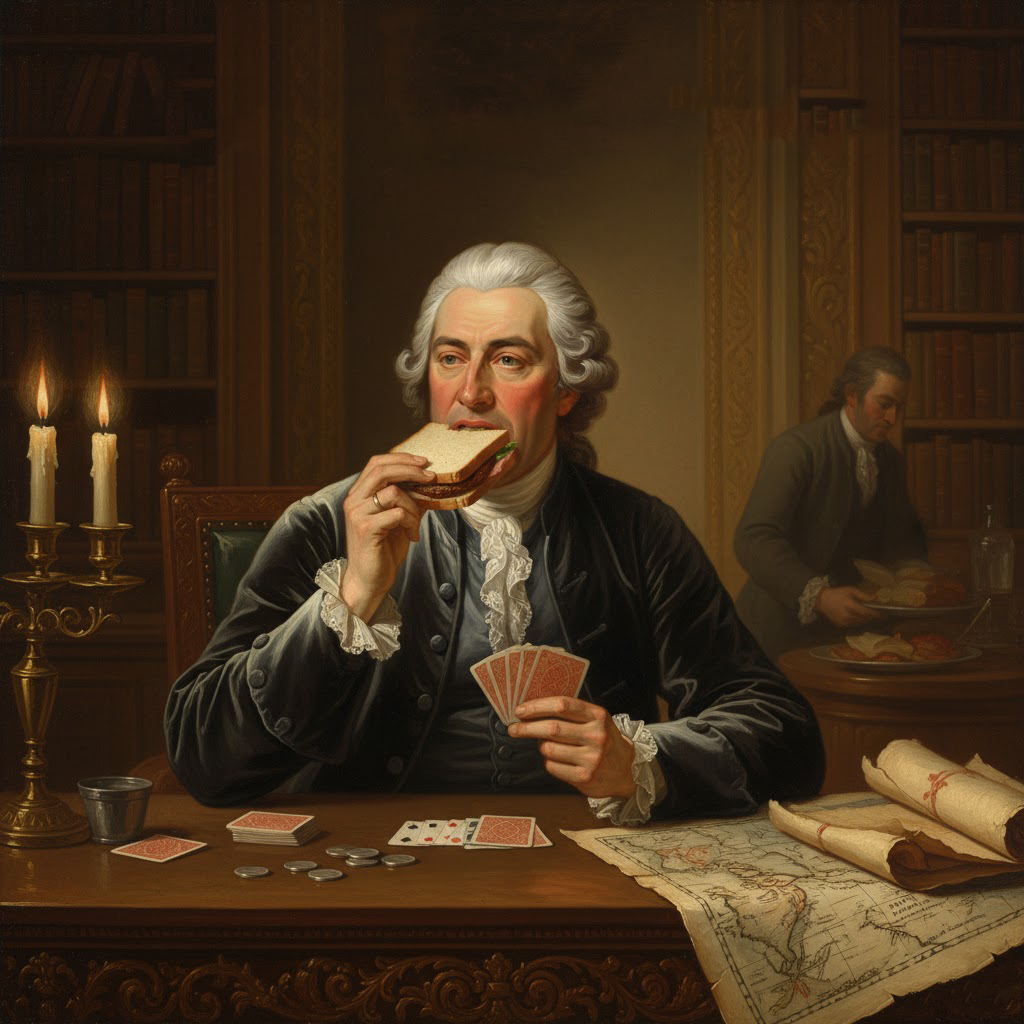 Príbeh hovorí, že gróf John Montagu bol taký zaneprázdnený (či už prácou, alebo kartovou hrou), že nechcel opustiť hrací stôl kvôli jedlu. Požiadal preto svojich sluhov, aby mu priniesli plátky hovädzieho mäsa medzi dvoma krajcami chleba. To mu umožnilo jesť len jednou rukou bez toho, aby si zašpinil prsty a karty, a pokračovať v hre. Iná teória hovorí, že to robil kvôli veľkej pracovnej zaneprázdnenosti.