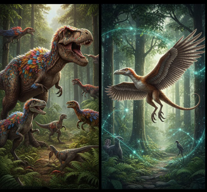 História vtákov je jedným z najfascinujúcejších príbehov evolúcie, ktorý sa začal písať pred viac ako 150 miliónmi rokov v období jury. Dnes už vedci s istotou vedia, že vtáky nie sú len príbuznými dinosaurov, ale sú ich priamymi potomkami. Konkrétne sa vyvinuli z línie malých dvojnohých mäsožravých dinosaurov známych ako teropódy (kam patril napríklad aj známy Tyrannosaurus rex alebo Velociraptor). Mnohé z týchto dinosaurov mali perie dávno predtým, než sa objavila schopnosť letu, pričom im slúžilo najmä na reguláciu teploty alebo pri dvorení.