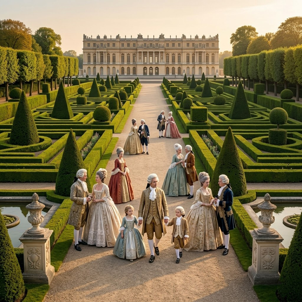 V 17. a 18. storočí sa s rozmachom baroka a klasicizmu začali pri palácoch budovať prísne strihané francúzske záhrady (napr. Versailles). Prechádzka v nich už nebola o love, ale o spoločenskom rituáli. Šľachta sa tu "ukazovala", nadväzovala kontakty a predvádzala módu. Tieto priestory boli navrhnuté tak, aby človek ovládol prírodu – stromy boli zostrihané do geometrických tvarov a cesty boli rovné, aby bolo vidieť každého prichádzajúceho.