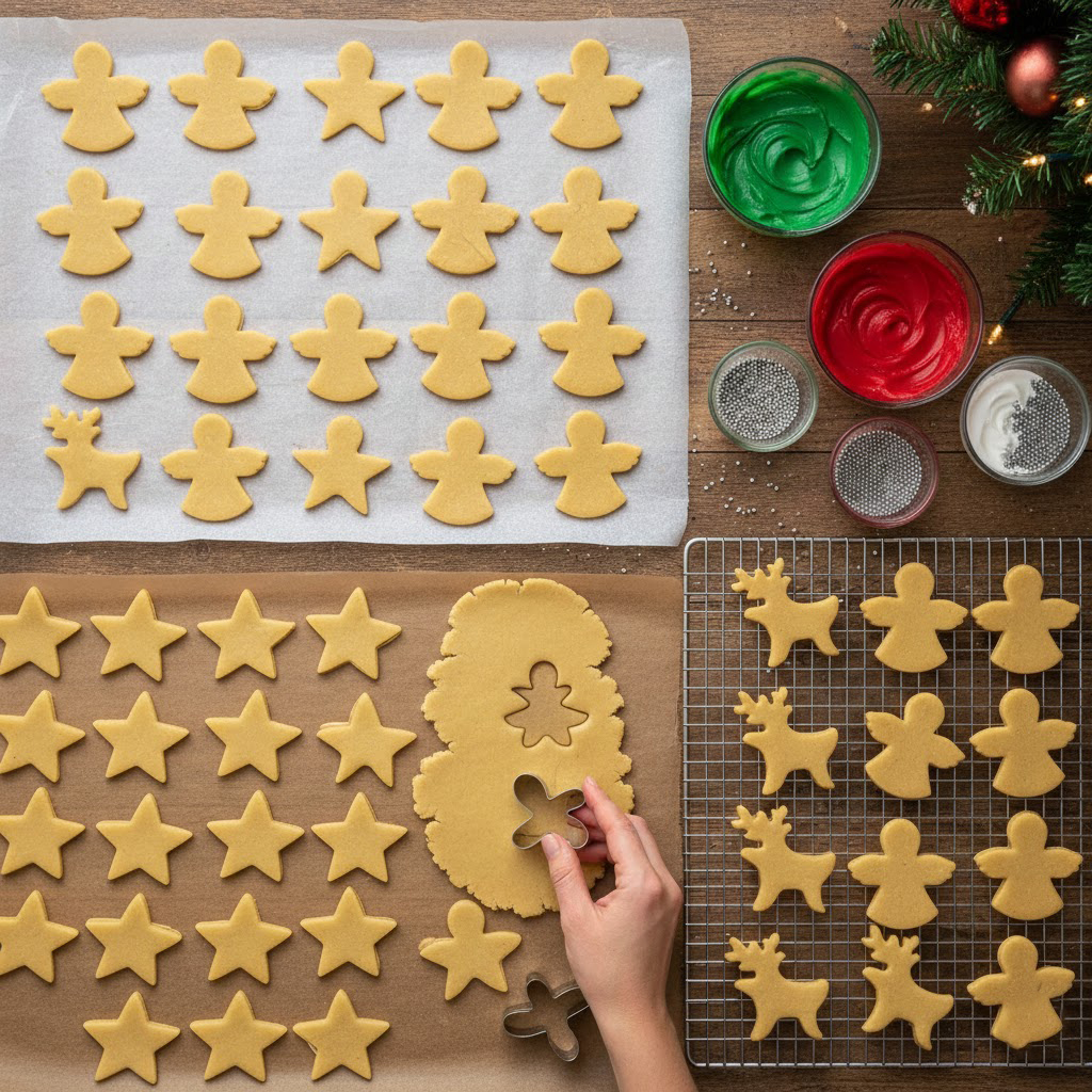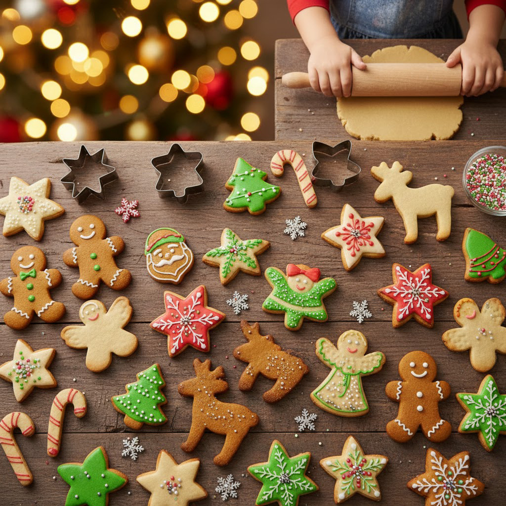 - Piecť sušienky: Upečte si dávku obľúbených koláčov (napr. perníky alebo maslové sušienky) a použite na ne rôzne zábavné a sviatočné tvary.