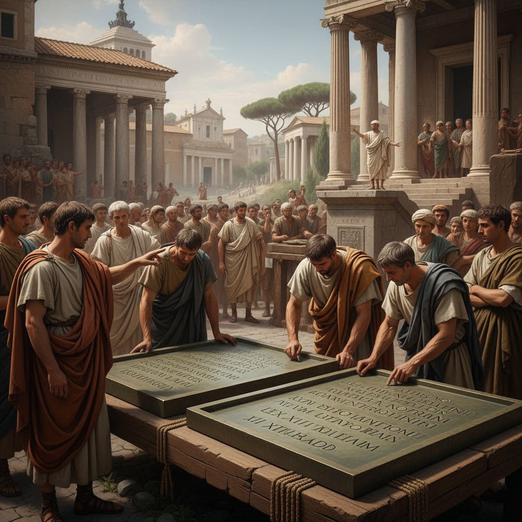 Prvé spísanie právnych noriem v starovekom Ríme obsahovalo aj Zákon Dvanástich tabúľ (Lex Duodecim Tabularum) pochádzajúce z obdobia cca 450 pred n. l. Hoci obsahoval verejné aj súkromné právo, predstavoval prvý krok ku konsolidácii právnych tradícií.