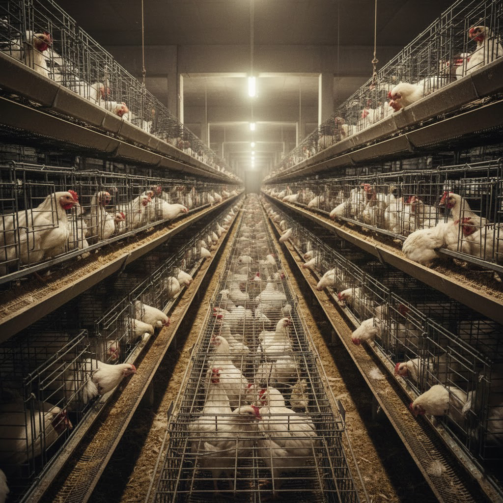 Utrpenie v chove: Kritika sa zameriava najmä na priemyselný veľkochov, kde sú zvieratá chované v preplnených a stresujúcich podmienkach, ktoré im bránia v prirodzenom správaní.