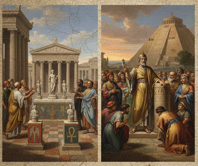 V mnohých starovekých ríšach tolerancia nebola etickou cnosťou, ale skôr pragmatickým nástrojom správy. Ríše prijímali rôzne božstvá a kultúry, aby si zabezpečili mier a lojalitu podmanených národov. Jedným z prvých príkladov náboženskej tolerancie bol Kyrov valec, ktorý po dobytí Babylonu umožnil rôznym skupinám, vrátane Židov, uctievať svojich bohov a vrátiť sa do vlasti.