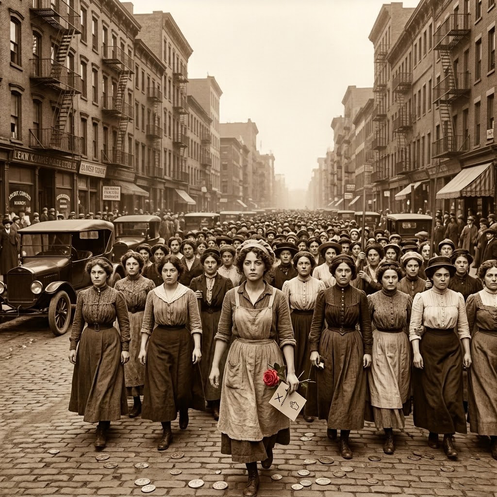 Všetko to začalo nespokojnosťou žien s pracovnými podmienkami. Kľúčovým momentom bol 8. marec 1908, kedy približne 15 000 krajčírok v New Yorku pochodovalo ulicami mesta. Ich požiadavky boli jasné: kratší pracovný čas, lepšie platy a, čo bolo vtedy revolučné, volebné právo. Ich heslom sa stalo "Chlieb a ruže", kde chlieb symbolizoval ekonomickú istotu a ruže lepšiu kvalitu života.