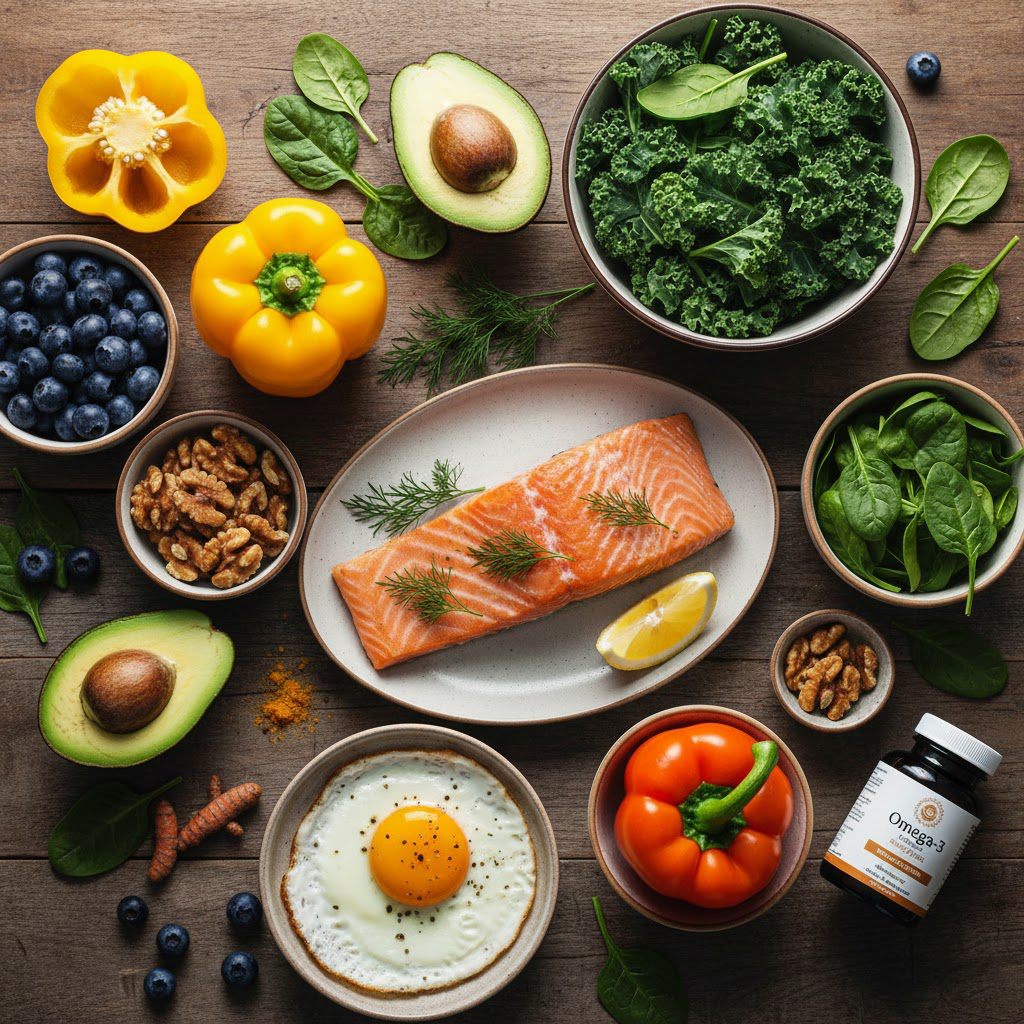 Antioxidanty: Jedzte stravu bohatú na antioxidanty. Zamerajte sa na ovocie a zeleninu sýtych farieb (špenát, kel, brokolica, žltá paprika).